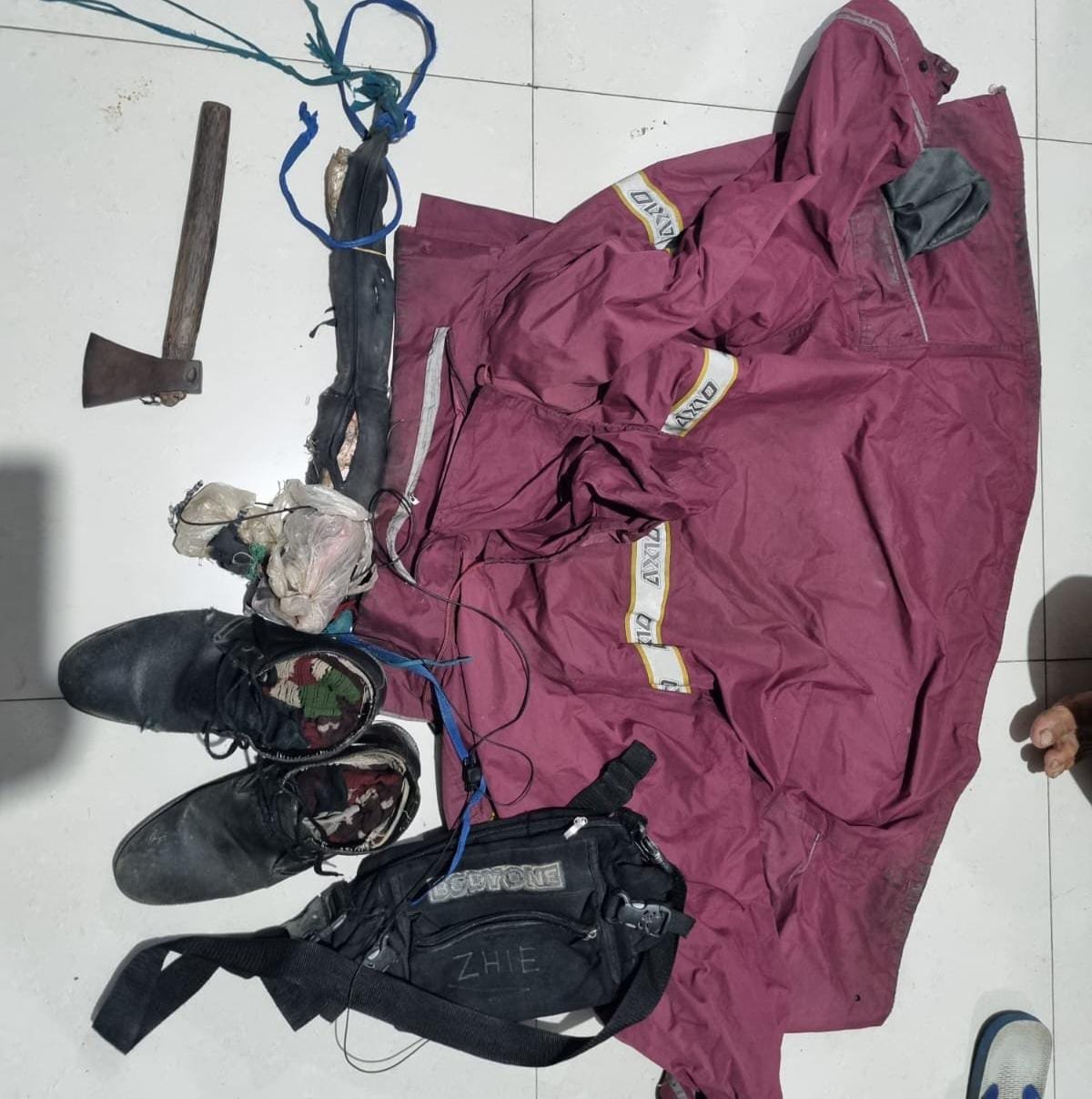 Barang bukti yang berhasil diamankan di antaranya satu unit telepon genggam merek Oppo warna emas, satu buah kampak bergagang kayu, satu jaket warna merah, satu pasang sepatu warna hitam, serta satu tas warna hitam.