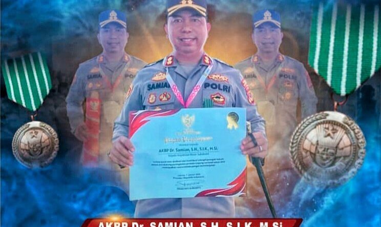 Sukabumi, jurnaltipikor.com/,-Kapolres Sukabumi, AKBP Dr. Samian, S.H., S.I.K., menerima penghargaan Satyalancana Wira Karya dari Presiden Republik Indonesia atas dedikasi dan kontribusinya dalam mendukung pencapaian swasembada pangan tahun 2025.