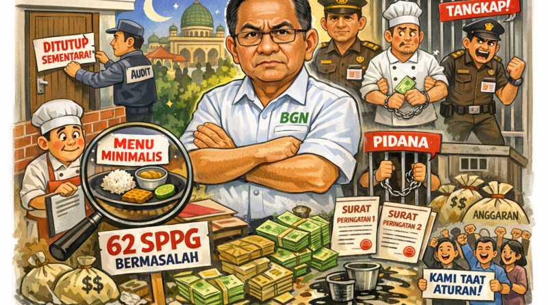 JAKARTA, JURNAL TIPIKOR – Di tengah khidmatnya bulan suci Ramadhan 1447 Hijriah, Badan Gizi Nasional (BGN) terpaksa mengambil tindakan tegas terhadap 62 Satuan Pelayanan Pemenuhan Gizi (SPPG) yang tampaknya salah mengartikan konsep “sederhana”.