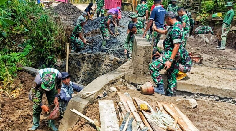 Komandan Satgas TMMD, Kapten Arm Andriono, turut terjun langsung ke lapangan membantu pekerjaan bersama anggota dan masyarakat. Kehadiran beliau tidak hanya memberikan arahan teknis, tetapi juga menjadi suntikan moril agar seluruh personel tetap bersemangat dan menjaga kualitas hasil pekerjaan.
