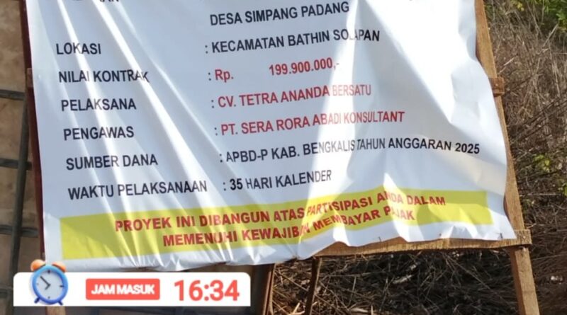 Meski papan informasi terpasang dengan mencantumkan Dinas Perumahan Rakyat Pemukiman dan Pertamanan (Perkimtan) Bengkalis serta anggaran APBD 2025 senilai Rp 199.900.000, warga menemukan kejanggalan fatal.