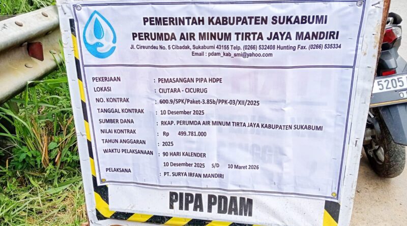 Sukabumi, jurnaltipikor.com/,-Dalam rangka memberikan pelayanan prima untuk kebutuhan air bersih bagi masyarakat, Pemerintah Kabupaten Sukabumi melalui Badan Usaha Milik Daerah (BUMD) yaitu Perusahaan Umum Daerah Air Minum Tirta Jaya Mandiri (Perumda AM TJM) yang beralamat di Jl. Cireundeu No. 5 Cibadak, Sukabumi melaksanakan proyek pemasangan Pipa HDPE di Ciutara – Cicurug, Sabtu (30/01/2026).