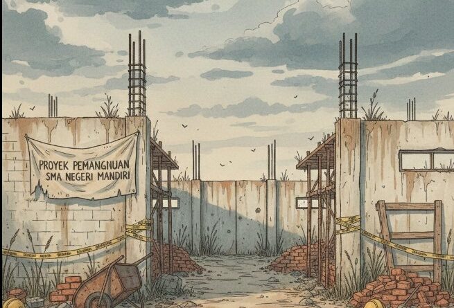 SUKABUMI, JURNAL TIPIKOR – Badan Pemantau Kebijakan Publik (BPKP) secara resmi mengeluarkan peringatan keras terhadap proyek pembangunan Unit Sekolah Baru (USB) SMA Negeri 1 Cibitung, Kabupaten Sukabumi. Proyek prestisius di bawah naungan Pemerintah Provinsi Jawa Barat dengan nilai kontrak fantastis Rp 6.586.161.000 dari APBD 2025 ini diduga kuat mengalami kemacetan pembangunan (mangkrak) yang mencederai hak pendidikan rakyat.