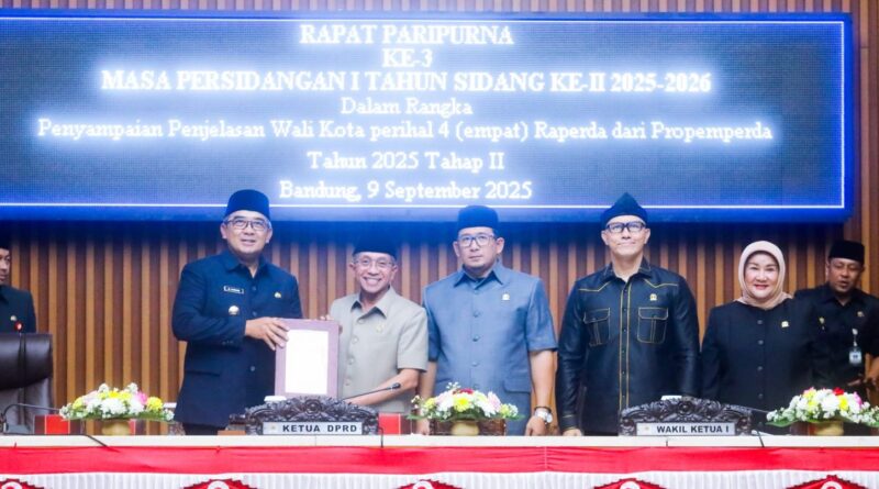 Bandung, JURNAL TIPIKOR – Pemerintah Kota (Pemkot) Bandung mengajukan empat Rancangan Peraturan Daerah (Raperda) baru dalam Rapat Paripurna ke-3 Masa Persidangan I Tahun Sidang 2025–2026 di Ruang Sidang DPRD Kota Bandung, Selasa 9 September 2025.